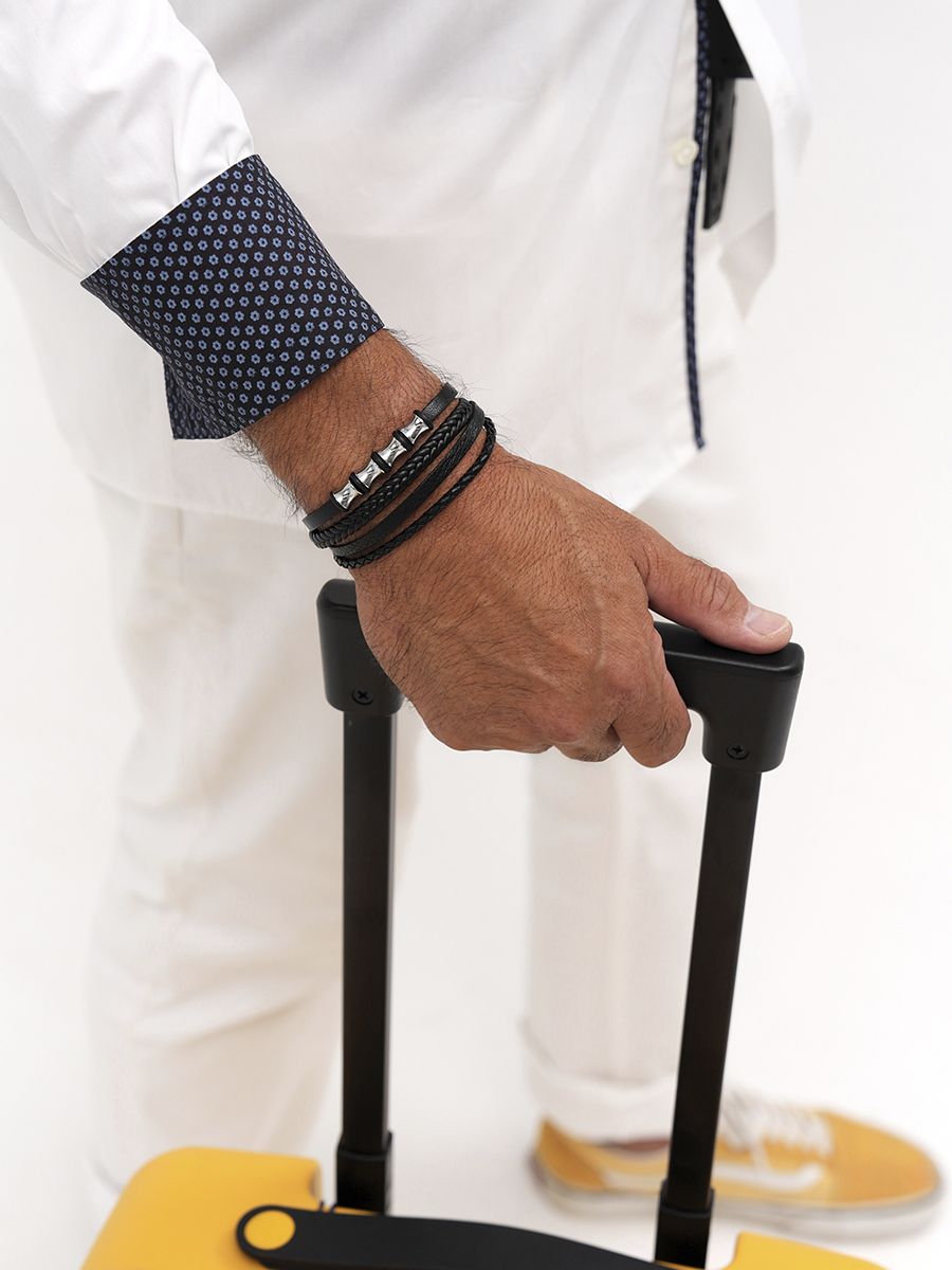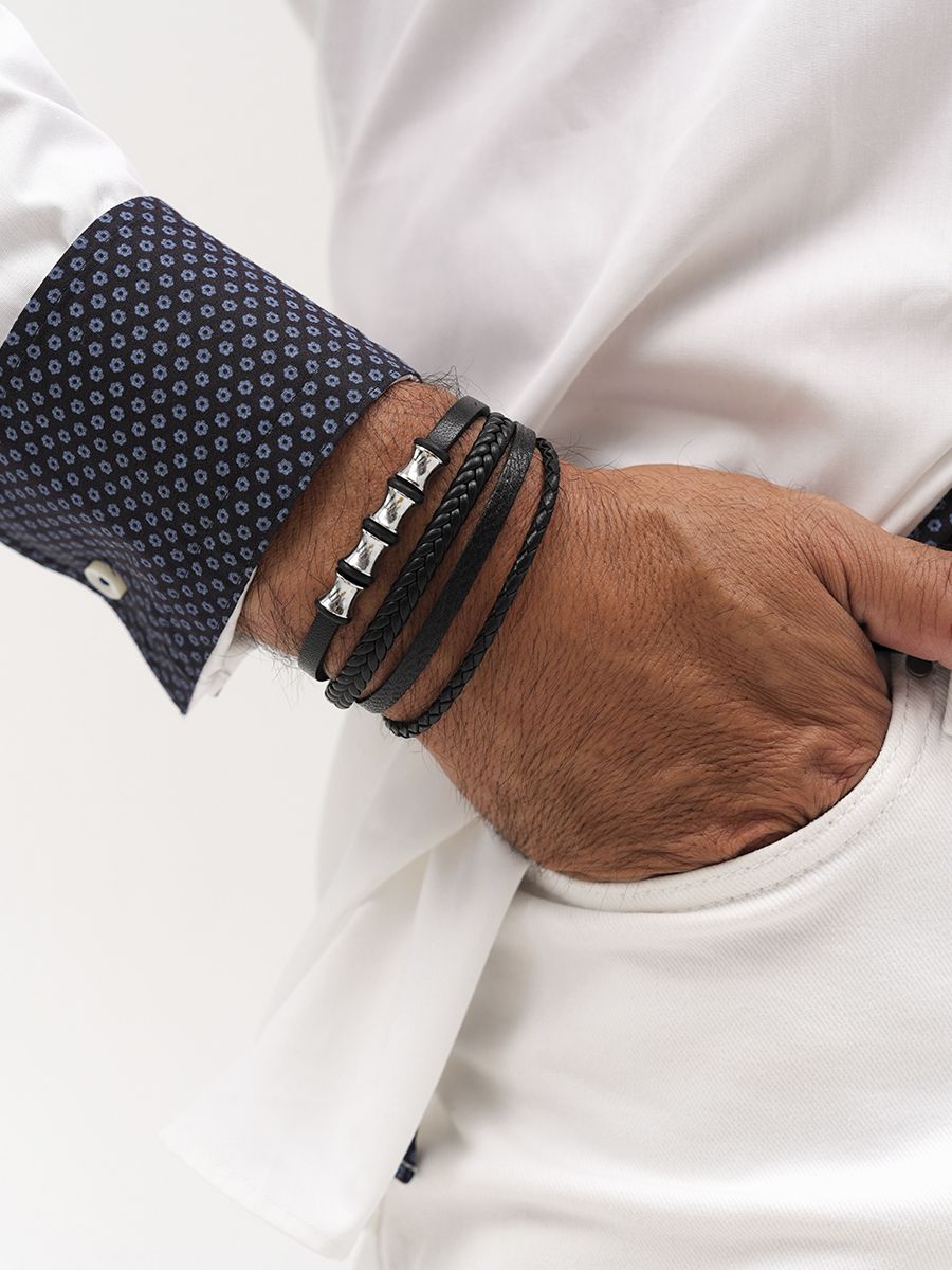 Кожаный браслет многослойный – это универсальный аксессуар, который подойдет к любой одежде. Бижутерия из кожи не просто красивое украшение – это признак хорошего вкуса. Лаконичный дизайн из кожи и с натуральными камнями ручной работы смотрится на запястье руки элегантно и в то же время дерзко. На металлической вставке выполнена лазерная гравировка с именной надписью — бренд massimo di pietro.