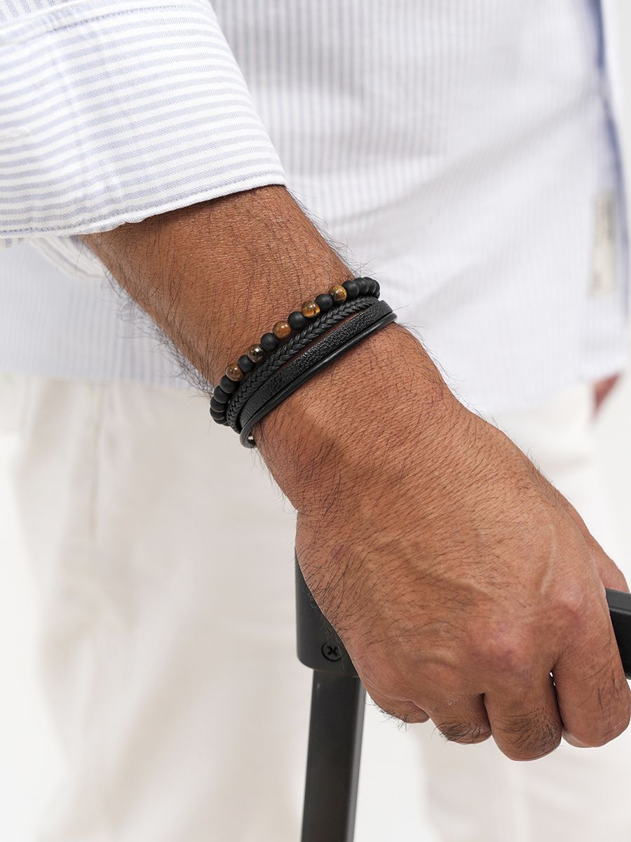 Кожаный браслет многослойный – это универсальный аксессуар, который подойдет к любой одежде. Бижутерия из кожи не просто красивое украшение – это признак хорошего вкуса. Лаконичный дизайн из кожи и с натуральными камнями ручной работы смотрится на запястье руки элегантно и в то же время дерзко. На металлической вставке выполнена лазерная гравировка с именной надписью — бренд massimo di pietro.
