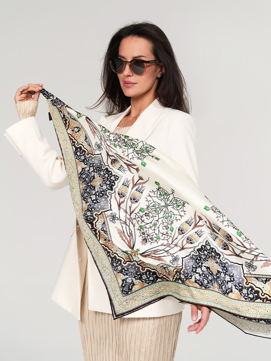 Самый красивый платок – тот, который согревает тебя сердцем, а не просто дополняет твою внешность. Таким и является авторский аксессуар от итальянского дизайнера massimo di pietro — тренд сезона 2024 года! Палантин дополнит любой образ, придав ему лёгкости и романтичности. Оригинальная косынка, выполнена из смеси натурального шелка (30%) и вискозы (70%). Производство платков — турция и и италия. Итальянский дизайнер massimo di pietro создал великолепные цветочные узоры на косынке, которые заключают в себе ноту ностальгии.