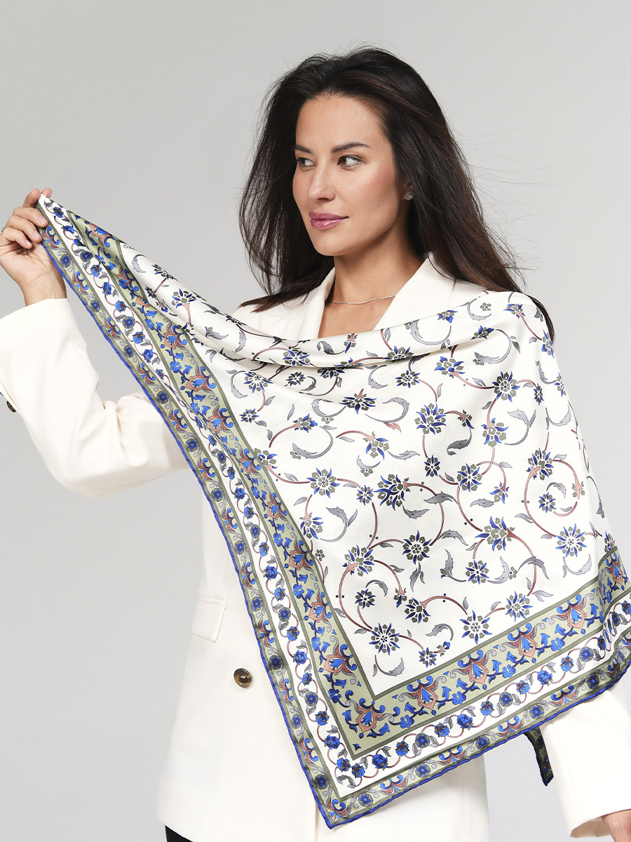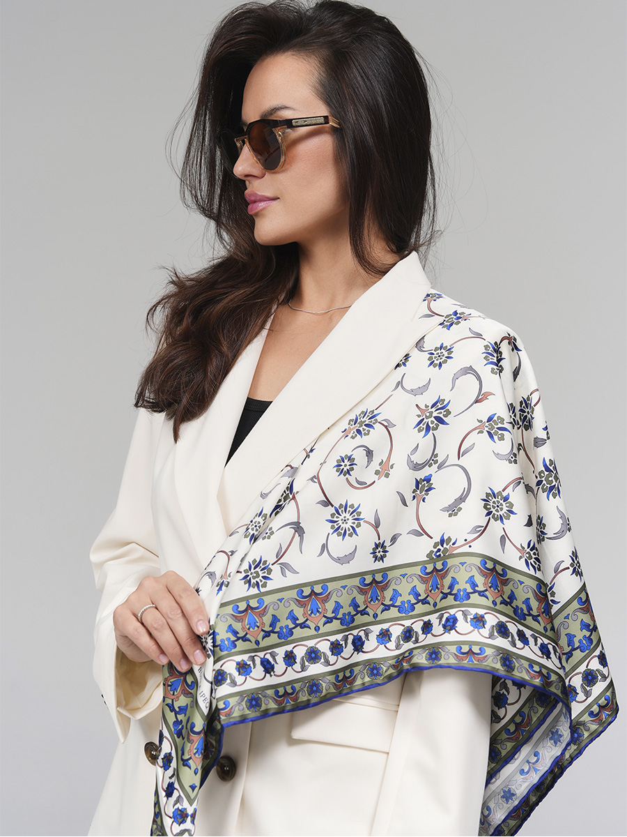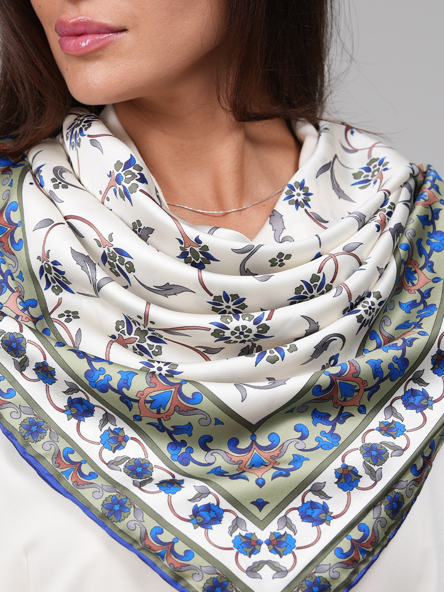 Самый красивый платок – тот, который согревает тебя сердцем, а не просто дополняет твою внешность. Таким и является авторский аксессуар от итальянского дизайнера massimo di pietro — тренд сезона 2025 года! Палантин дополнит любой образ, придав ему лёгкости и романтичности. Оригинальная косынка, выполнена из смеси натурального шелка (30%) и вискозы (70%). Производство платков — турция и и италия. Итальянский дизайнер massimo di pietro создал великолепные цветочные узоры на косынке, которые заключают в себе ноту ностальгии.